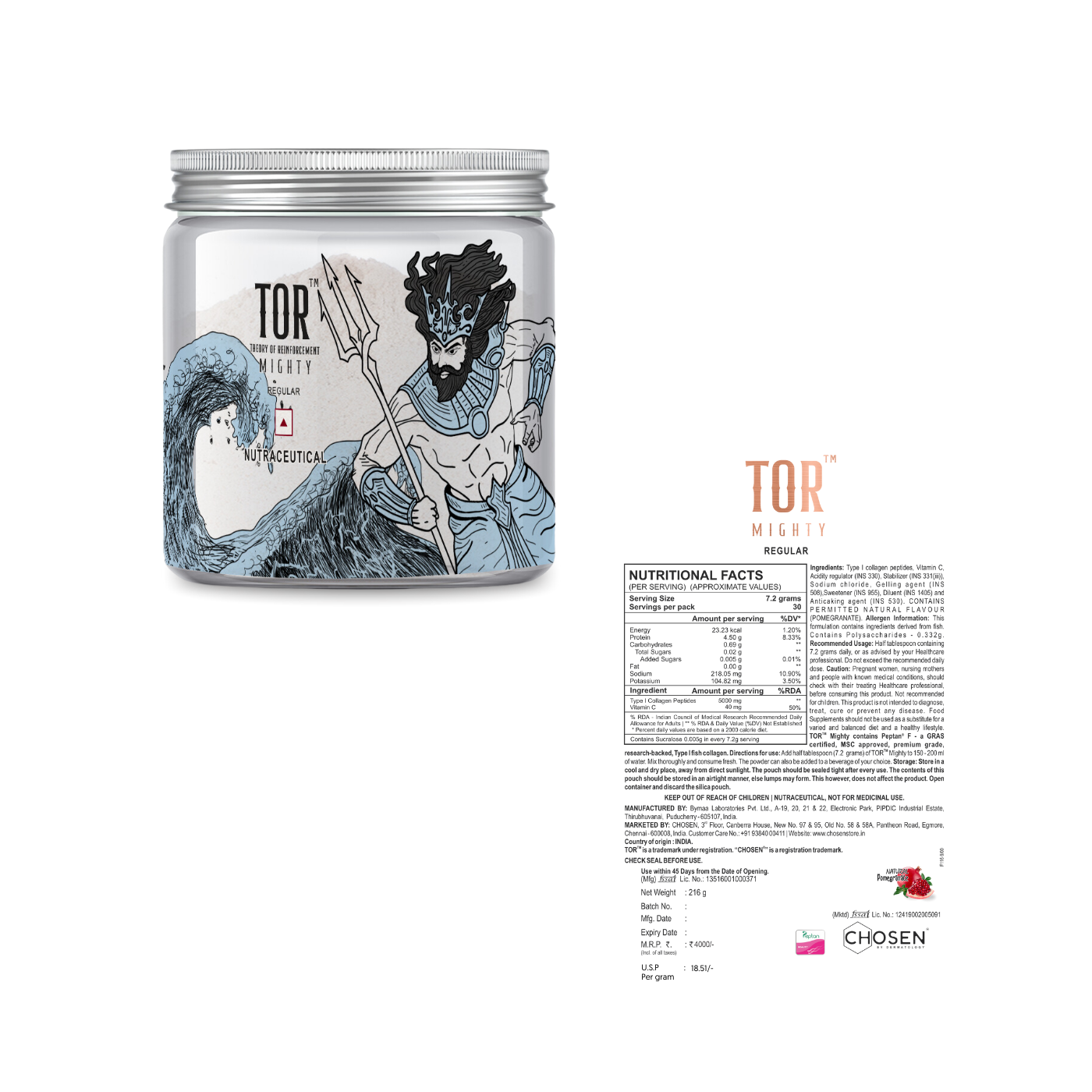 TOR Mighty Marine Collagen is a premium mercury-free marine collagen powder sourced sustainably from wild-caught white fish. It replenishes collagen in the skin, improving skin elasticity and hydration resulting in healthy, youthful skin.